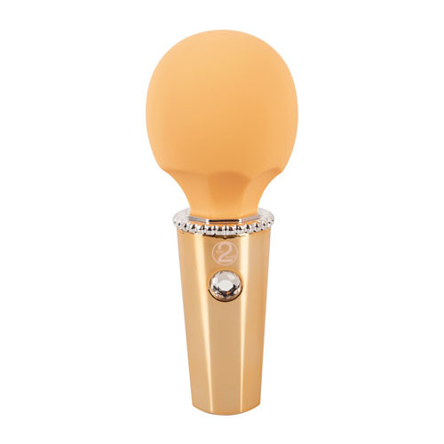 Small & compact massage wand Mini Wand - Mango from You2Toys in a fruity, fresh sorbet colour and elegant metallic look with a sparkling glitter stone as a control button. With its flexible, silky soft massage head, it is suitable for both long massages and precise stimulation.