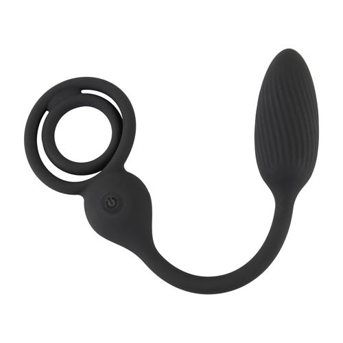 The Rebel - Cock and Ball Ring with RC Butt Plug is a combination cock and ball ring with a connected vibrating anal plug that can be controlled via a remote and thanks to its 15-meter range, even by a partner.